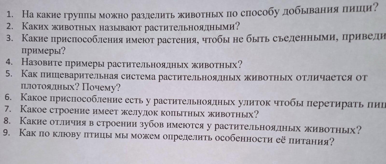 1.Растительноядные едят растения, насекомоядные - насекомых, хищные - других животных, а всеядные могут есть любую пищу.