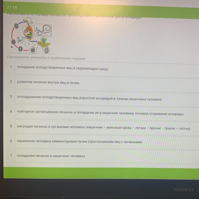 Расположите по порядку процессы,происходящие в цикле аскариды