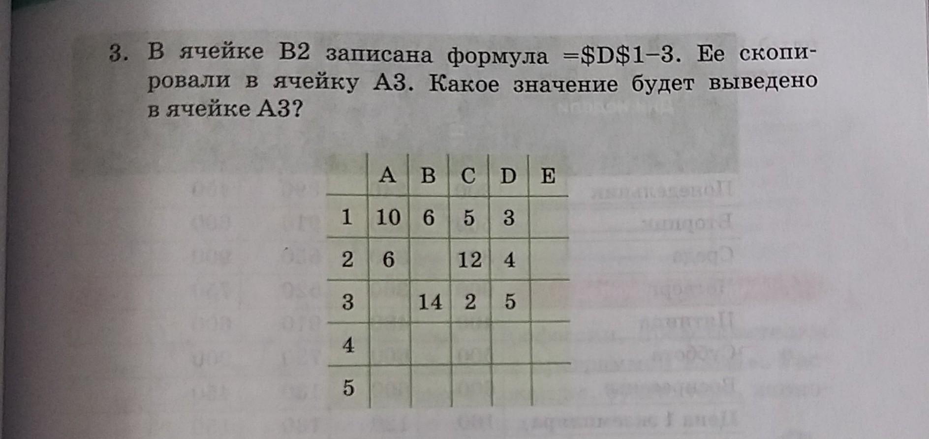 3. В ячейке В2 записана формула-$DS1-3. Ее скопи- ровали в ячейку АЗ. Какое значение будет выведено в ячейке АЗ?