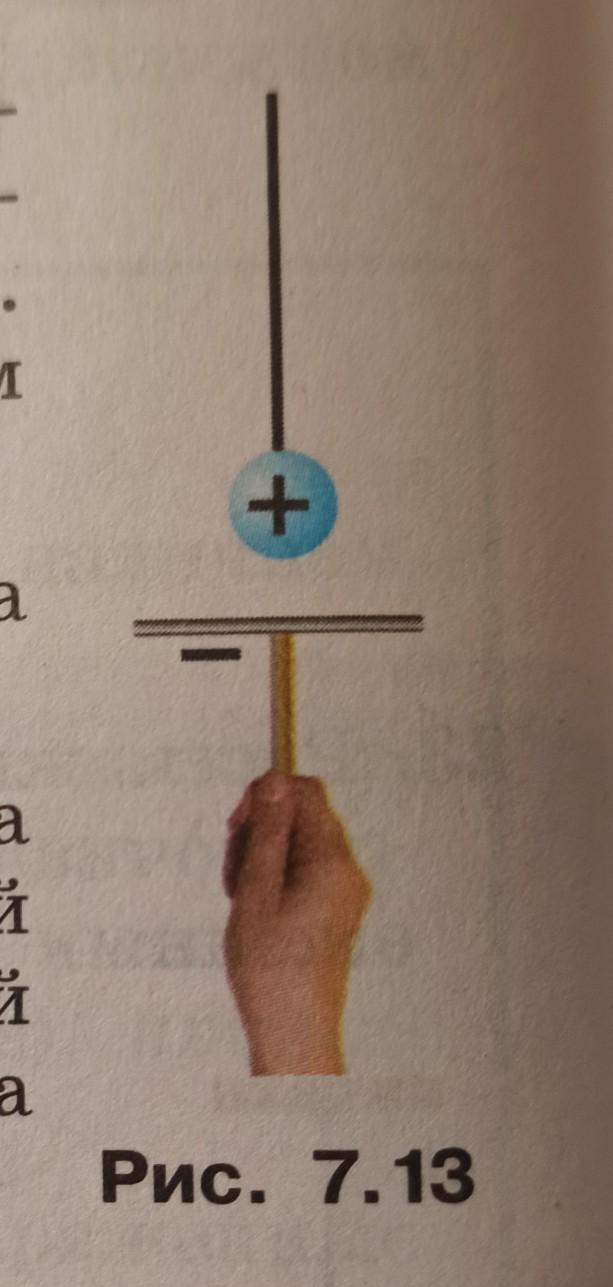 К подвешенному на нити заряженному металлическому шарику поднесли заряженную металлическую палочку как показано на рисунке 7.13. Изобразите на нем все силы действующие на шарик.