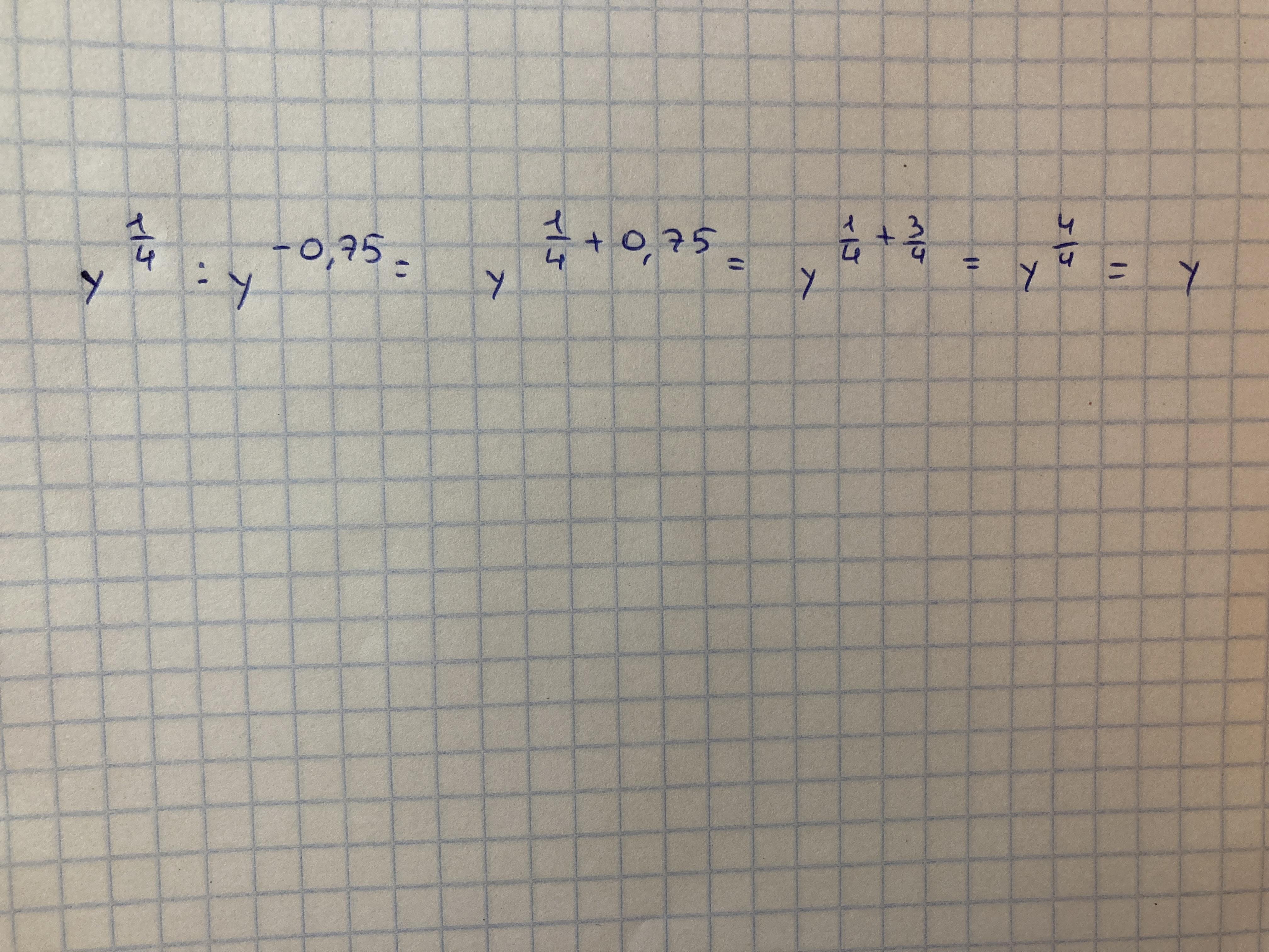 y1/4 : y0.75 = y 1/4+3/4 = y 4/4 = y