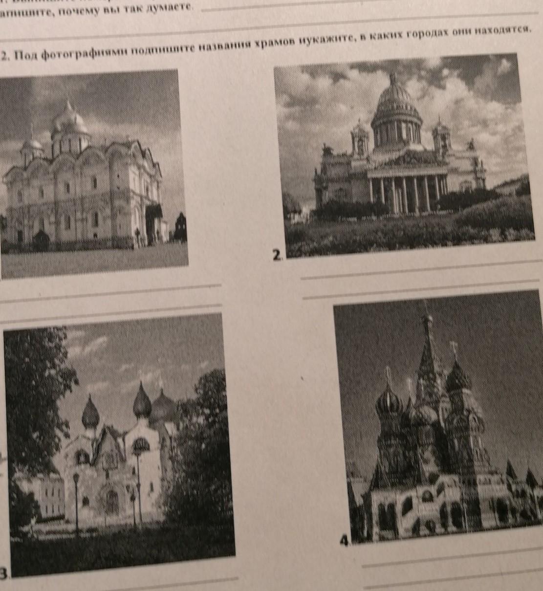 1,2, под фотографиями полотнуе названия храмов нуклеите, пелених городах они находите, 1 2 4