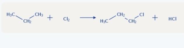 3 стадии взаимодействия пропана с хлором:на фото