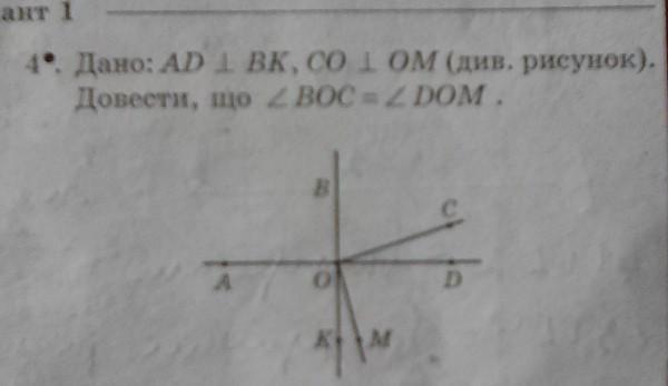 уголВОС=х, уголСОД=уголВОД-уголВОС=90-х, уголДОМ=уголСОМ-уголСОД=90-(90-х)=х, уголВОС=уголДОМ