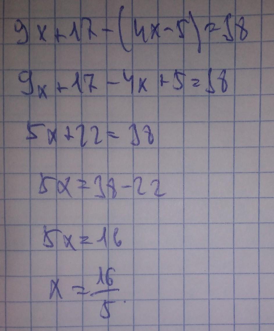 9x + 17 - ( 4x - 5) = 38