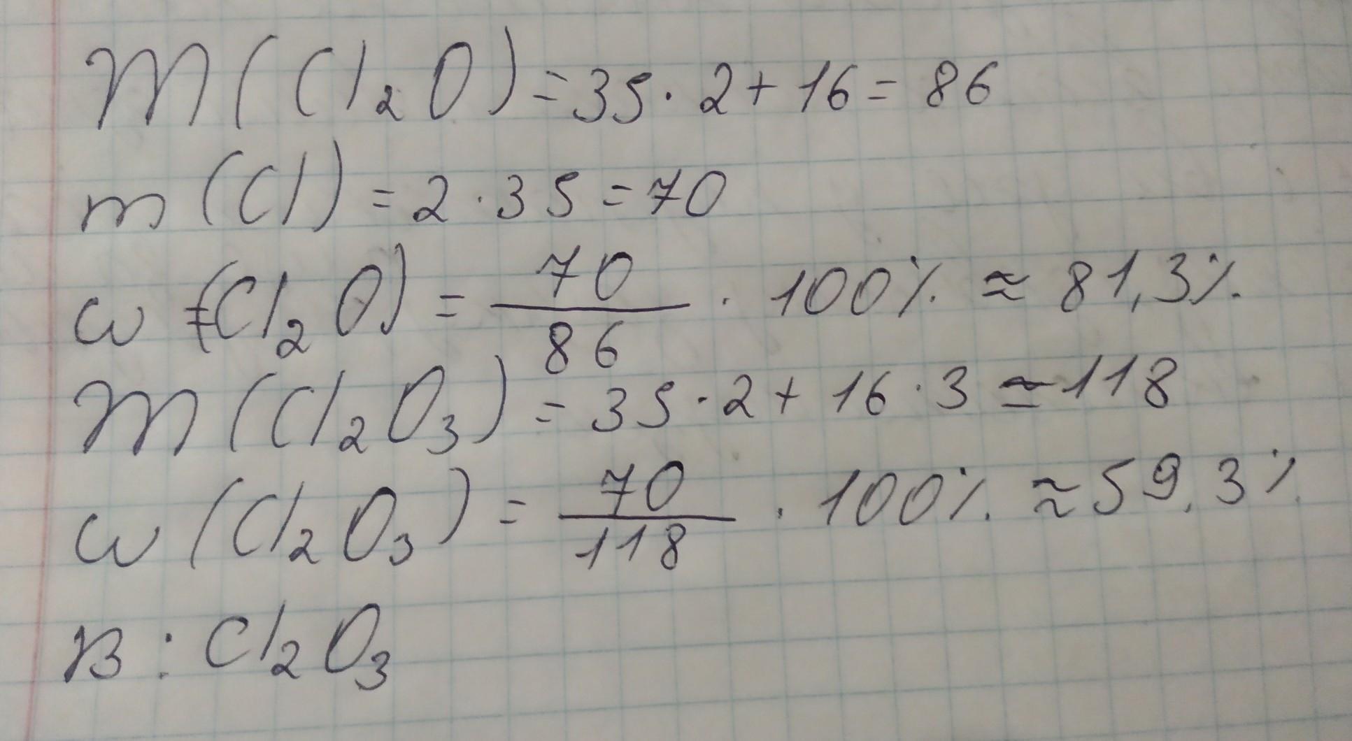 M(Cl2O3) = 35,5*2 + 16*3 = 119 г/моль