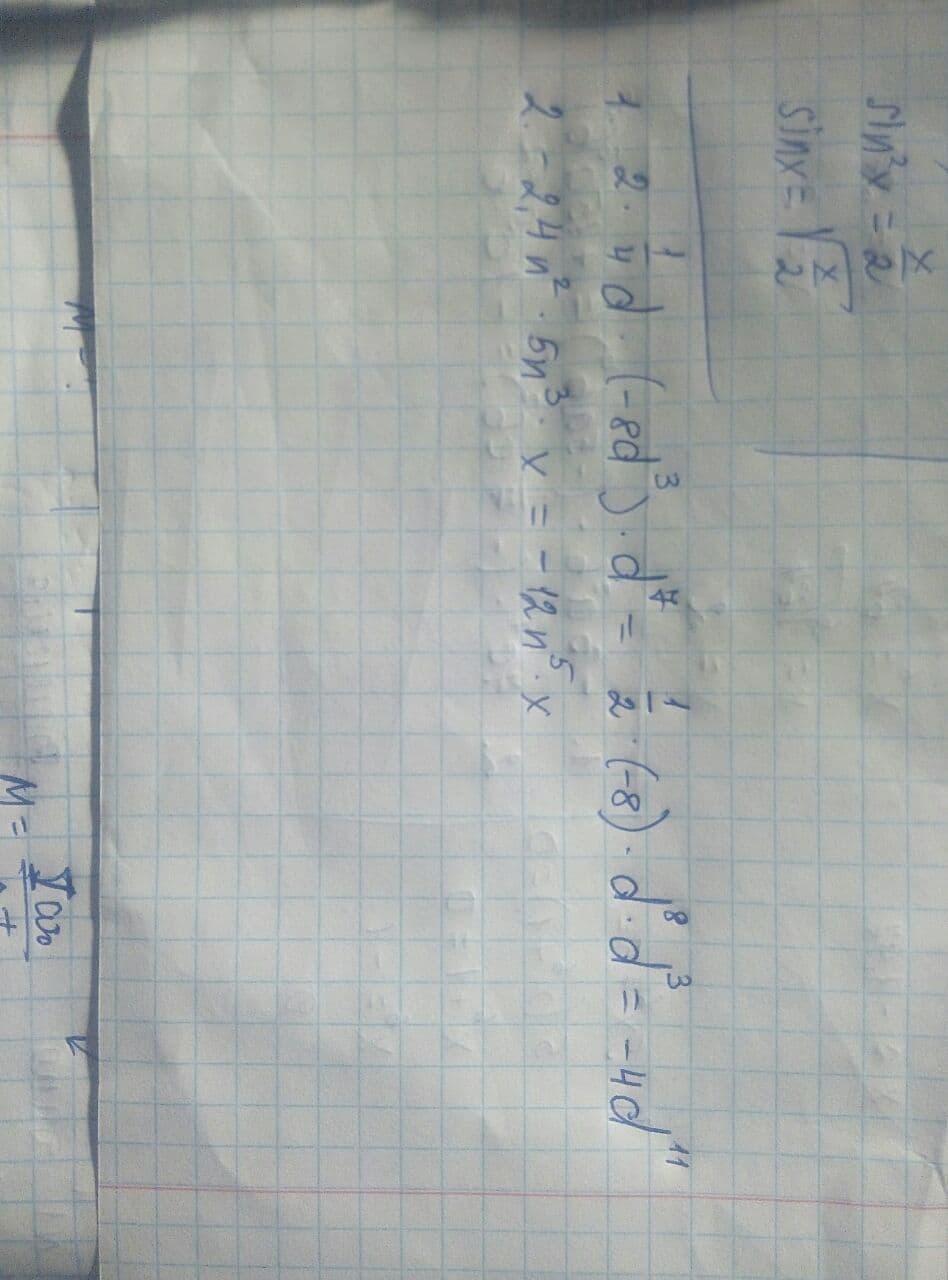 зведіть одночлен до стандартного вигляду , укажіть його коефіцієнт і степінь. 1) 2 ¼d × (-8d³) × d⁷= 2)-2,4n² × 5n³ × x=