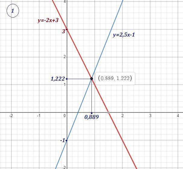 Точка пересечения (0,889 ; 1,222) .