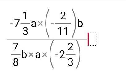 [(-7 1/3)×а×(-2/11)×b] / [(7/8)×b×a×(-2 2/3)] = [(-22/3)×a×(-2/11)b] / [(7/8)×b×a×(-8/3)] = [ (-2/3)×2] / (7× 1/3) = (-2×2)/7 = - 4/7 ≈ -0,57