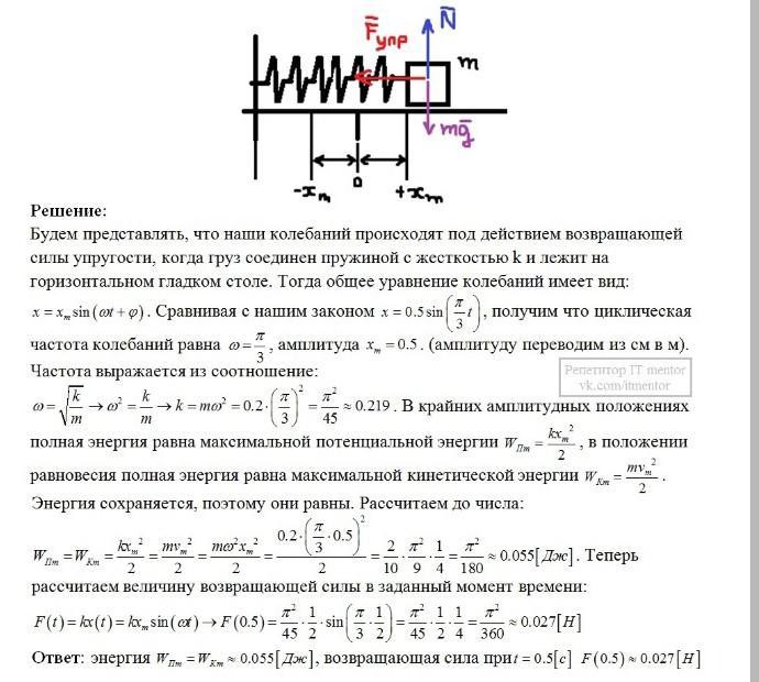 Упражнение 1 из 5 Тело совершает гармонические колебания по закону x(t)=50sin(t+ 3/π ) . Чему равна начальная скорость тела?