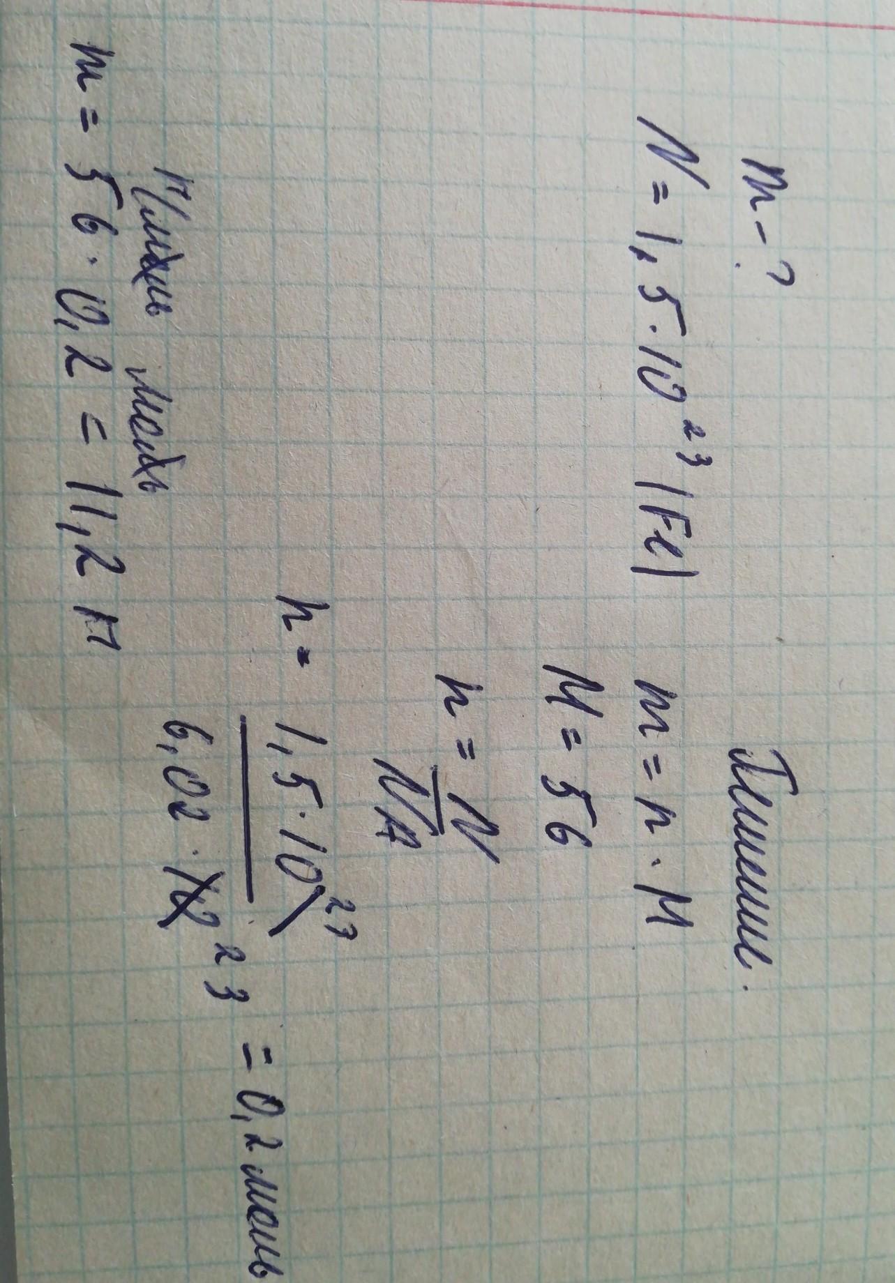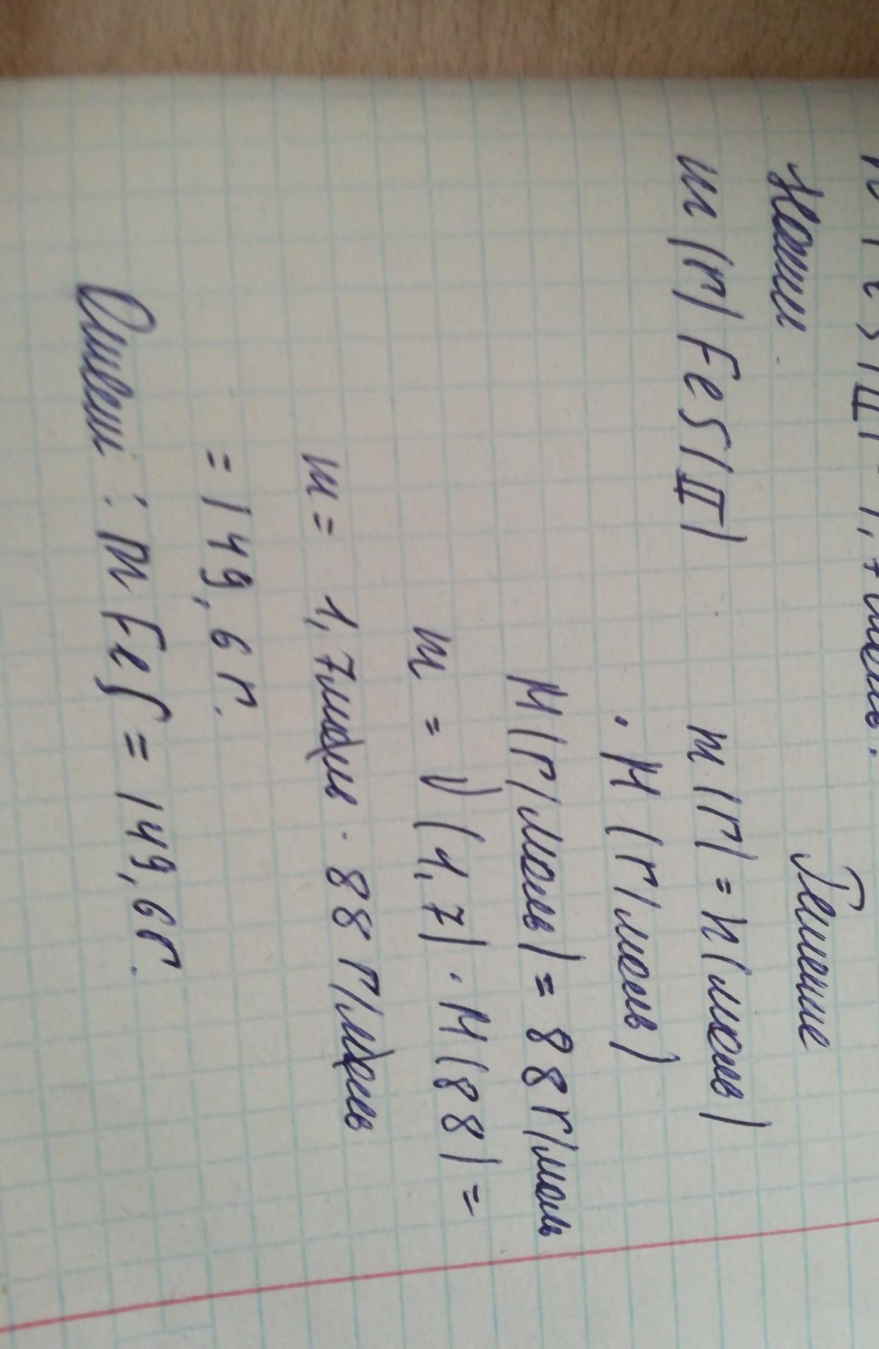 вариант 1) Рассчитайте массу сульфида железа (II) FeS количеством вещества 1,7 моль 2) Сколько атомов содержится в 92 г натрия Na? 3)Какую массу имеют 1,5х1023 атомов железа Fe?