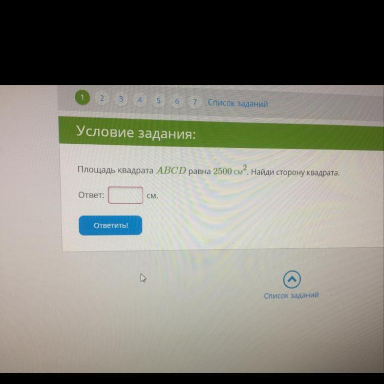 S=а²=2500 см² ⇒ а=√2500=50 см
