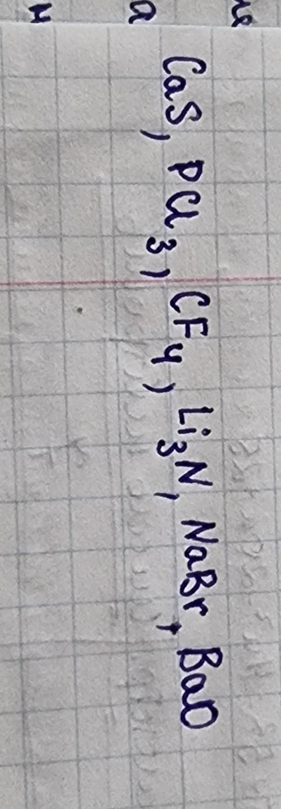 Составьте формулы по валентности следующих соединений: сульфид кальция, хлорид фосфора (III), фторид углерода (IV), нитрид лития, бромид натрия, оксид бария.