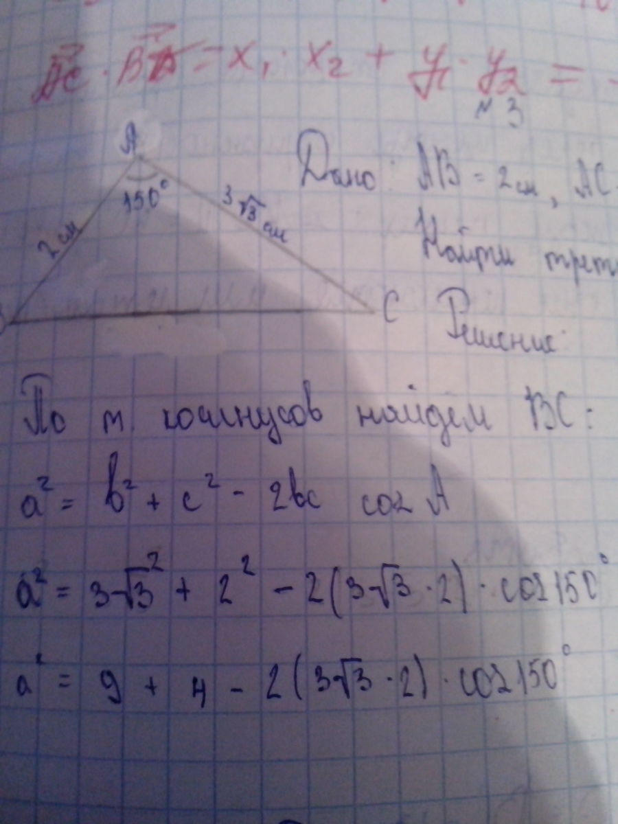 a²=27+4-2*2*3√3*cos150=31-12√3*√3/2=31-18=13