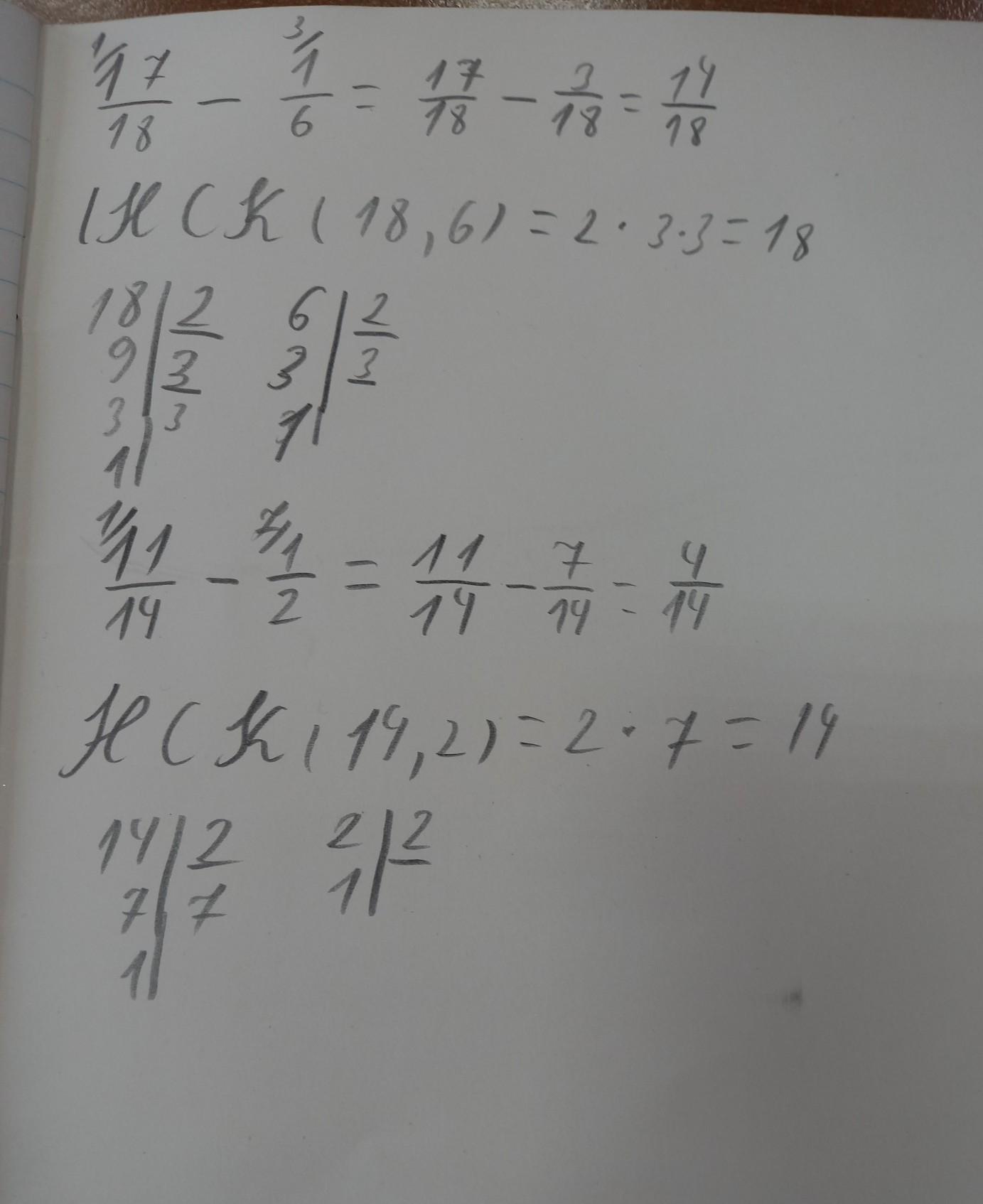 17/18 - 1/6 = 17/18 - 3/18 = 14/18 = 7/9