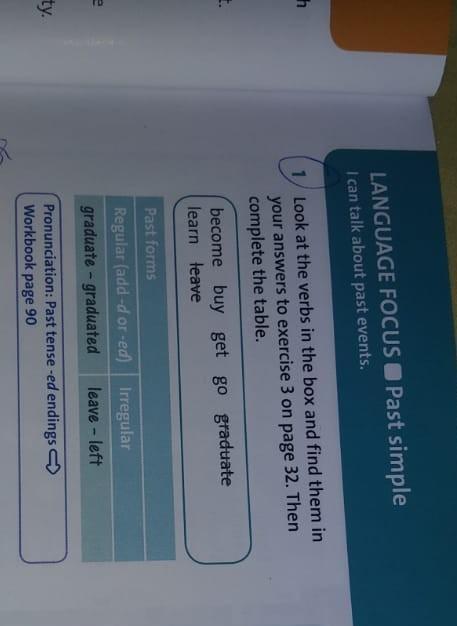 Ex1.Look at the verbs in the box and find them in your answers to exercise 3on page 32.Them complete the table.