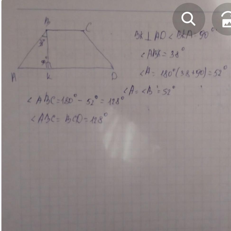 Висота рівнобічної трапеції, проведена з вершини тупого кута, утворює з бічною стороною кут 34°. Знайдіть кути трапеції