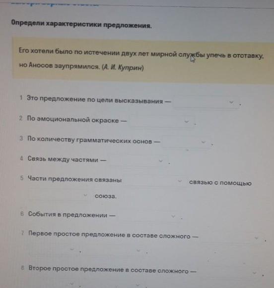 7) первое простое предложение : Его хотели было по истечении двух лет мирной службы упечь в отставку