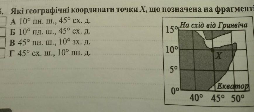 а) 10° пн.ш., 45°сх.д