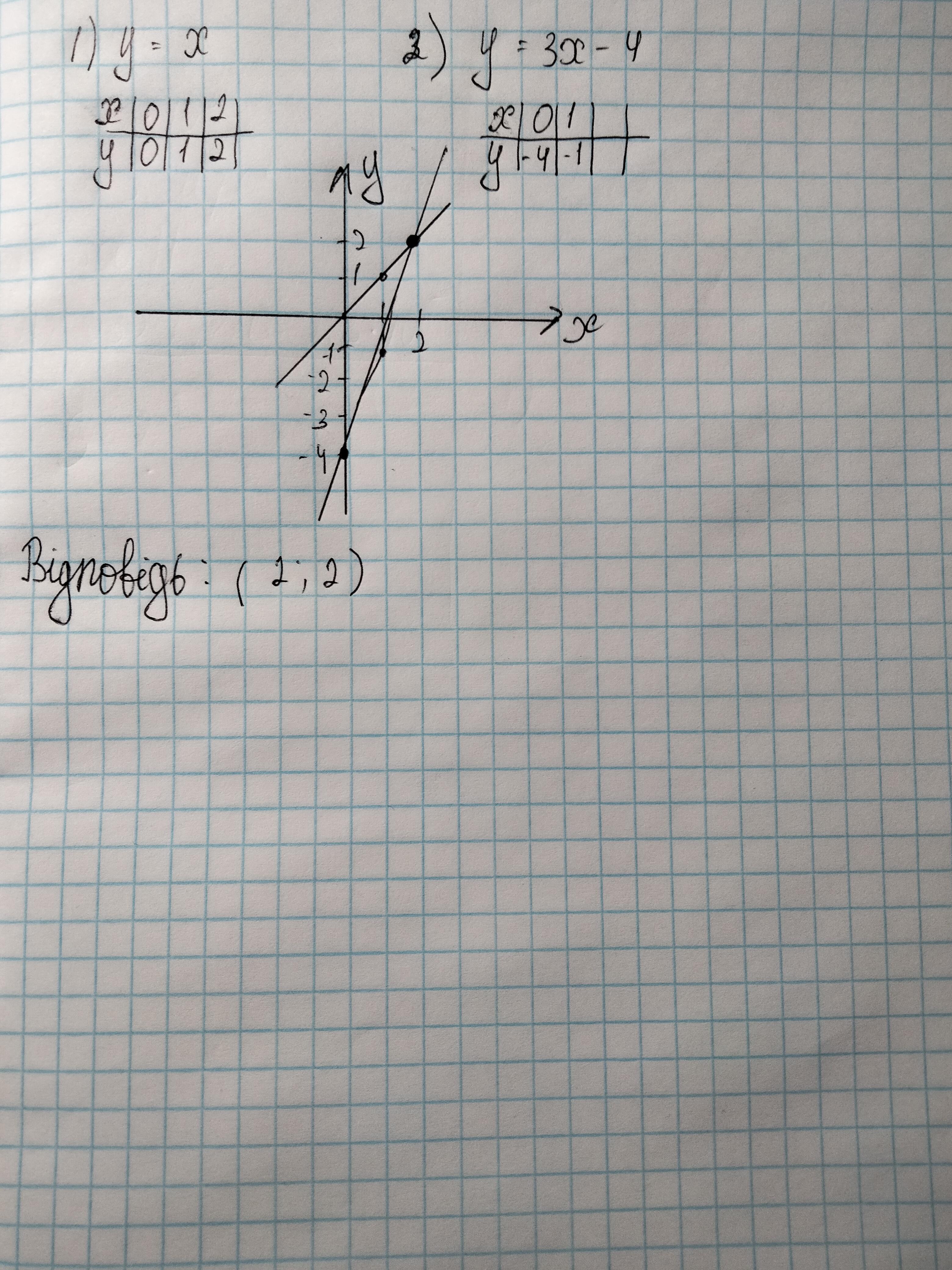 Пояснення: малюємо графіки двох функцій, точка перетину-рішення