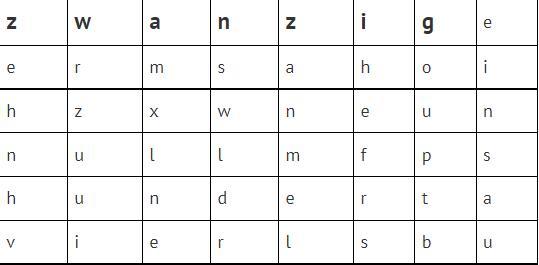Welche Zahlen finden Sie? Какие цифры вы можете найти? Необходимо искать по горизонтали и вертикали (минимум 5 цифр; данное упражнение – на повторение пройденного материала).