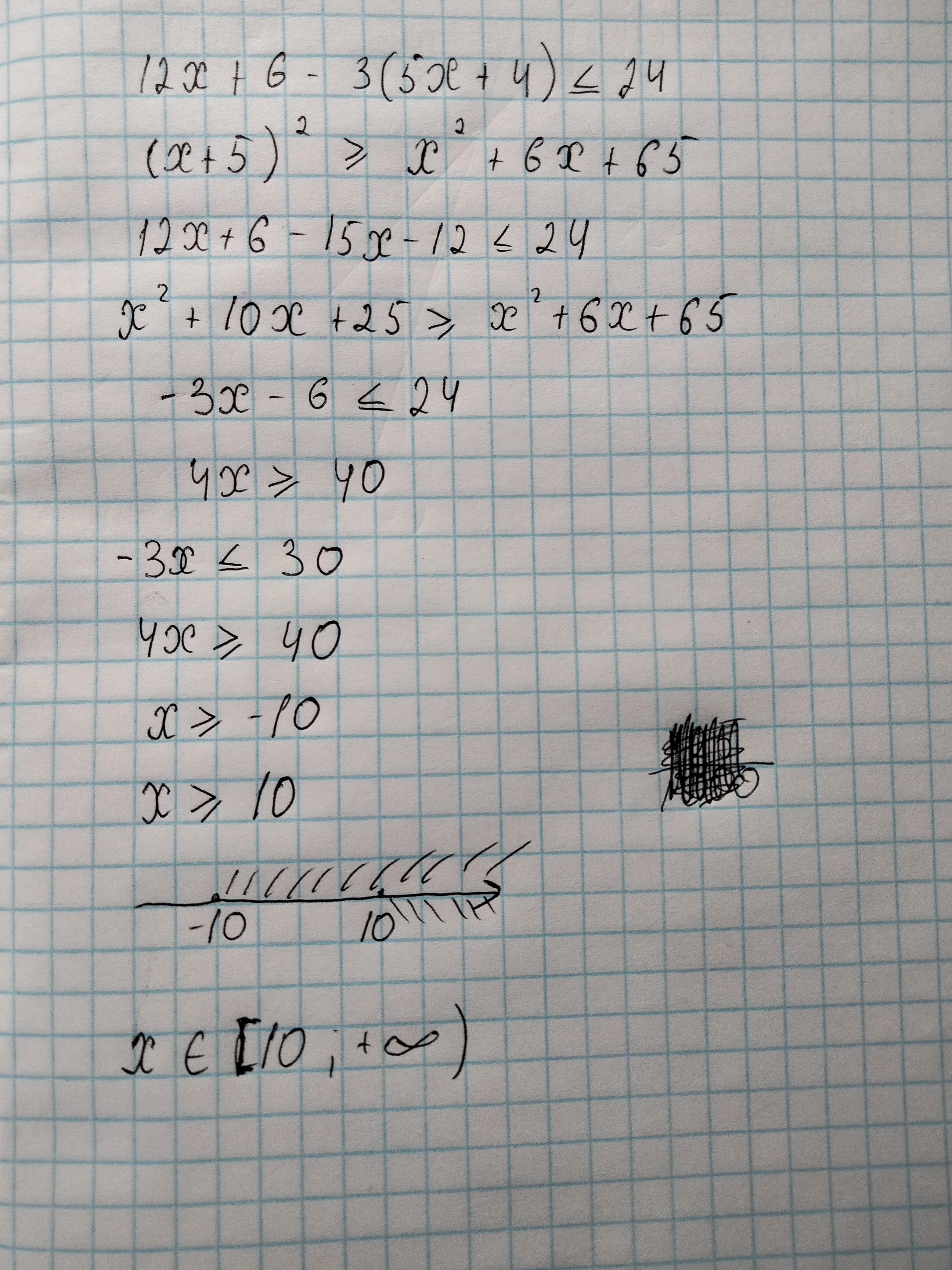 Відповідь: х є [10; +нескін.)