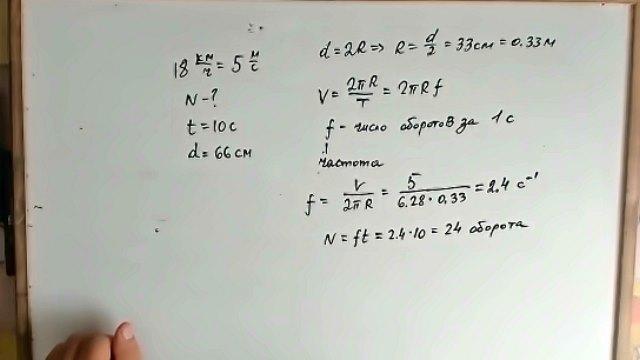 велосипедист движется со скоростью 18км/ч. Сколько оборотов совершают колёса велосипеда за 10с, если диаметр колеса равен 66см?
