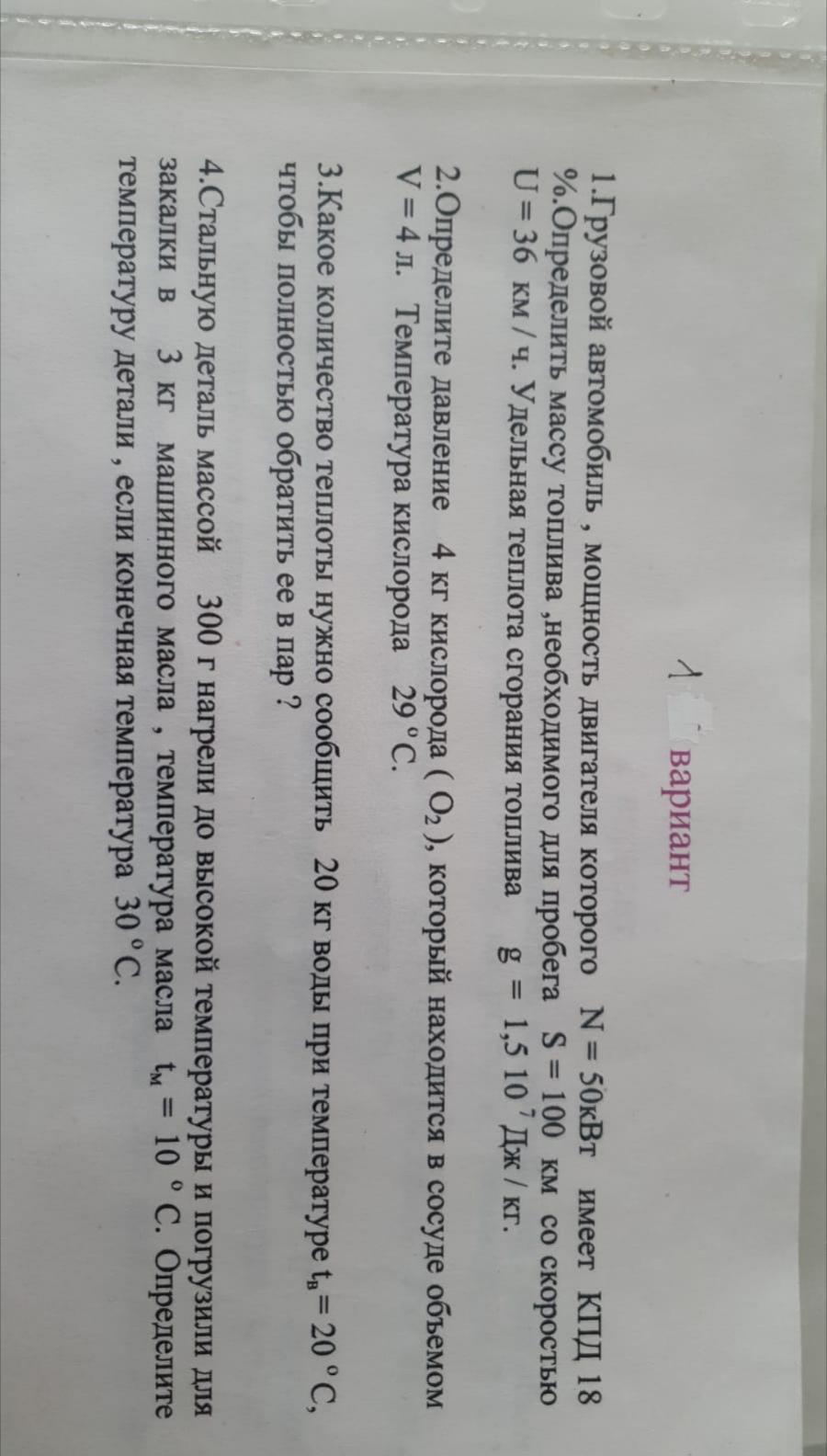 Грузовой автомобил, мощность двигателя которого N=50кВт имеет КПД 18%. Определите массу топлива, необходимого для пробега S=100км со скоростью U=36км/ч. Удельная теплота сгорания топлива g=1,5*10^7 дж/кг