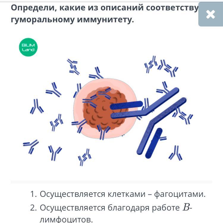 Определи, какие из описаний соответствуют гуморальному иммунитету.
