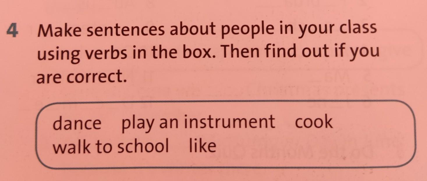 Make sentences about people in your class using verbs in the box. Then find out if you are correct.