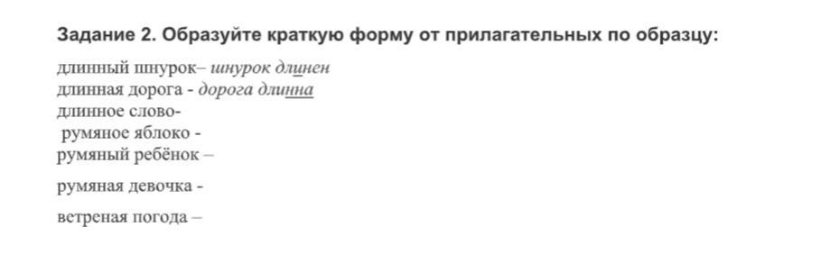 слово длинно, яблоко румяно, ребенок румян, девочка румяна, погода ветрена