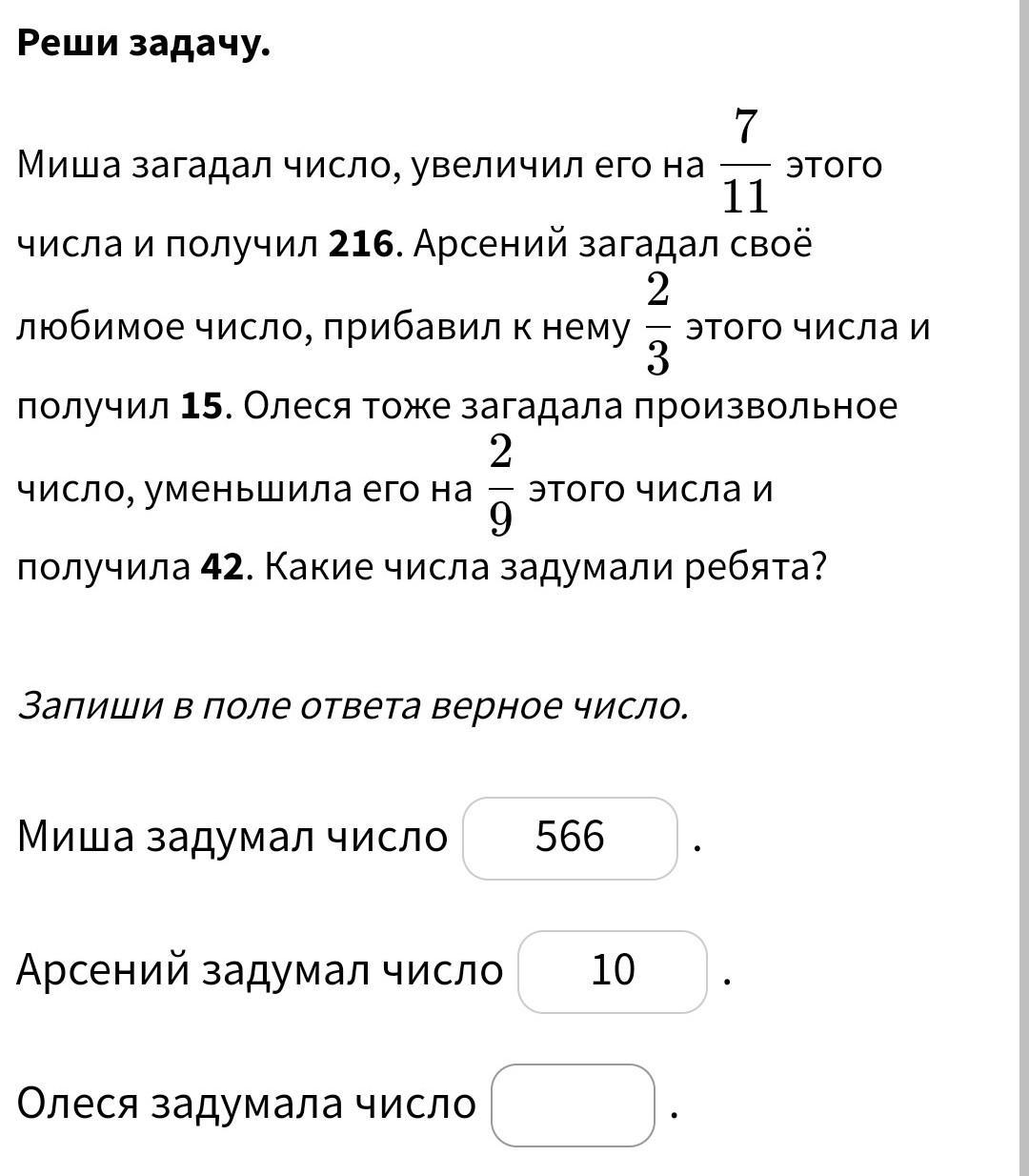 х + 7/11х = 216 - к задуманному числу прибавил 7/11 этого числа