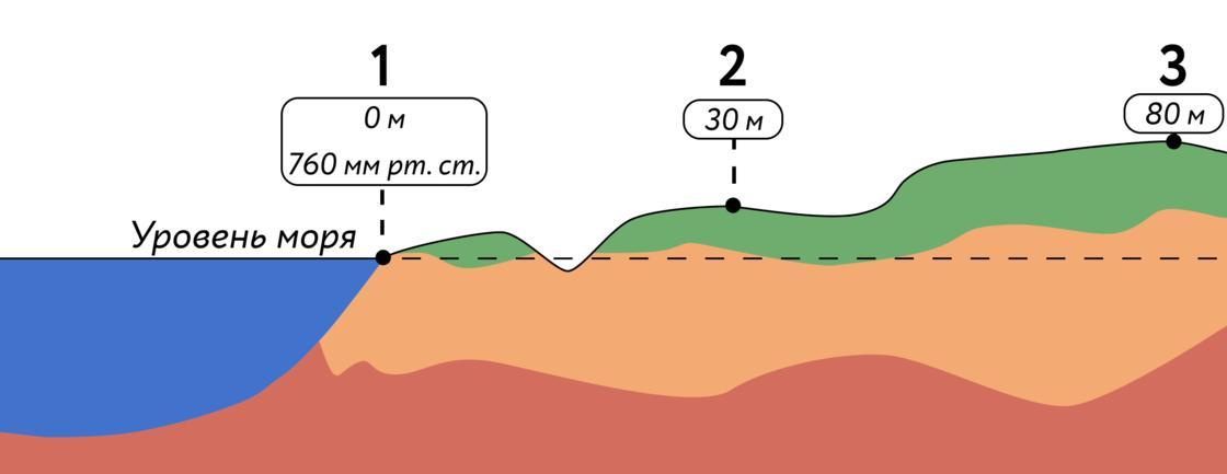Определите атмосферное давление в пункте 3. В ответ запишите только число.
