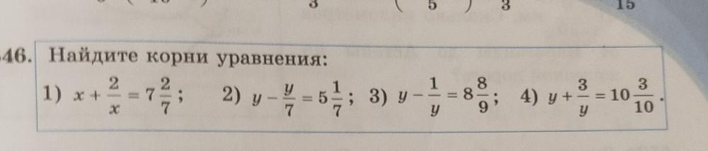 546. Найдите корни уравнения: 2 1) x+ 7 3 3 т; 2) и 2) v-5-5.2; 3) v-_-8; 4) v+) -10% х у 10 помогите