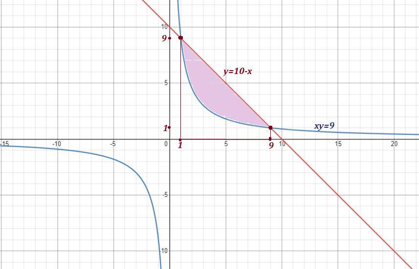 Вычисляем объём как разность объёмов при вращении двух криволинейных трапеций.