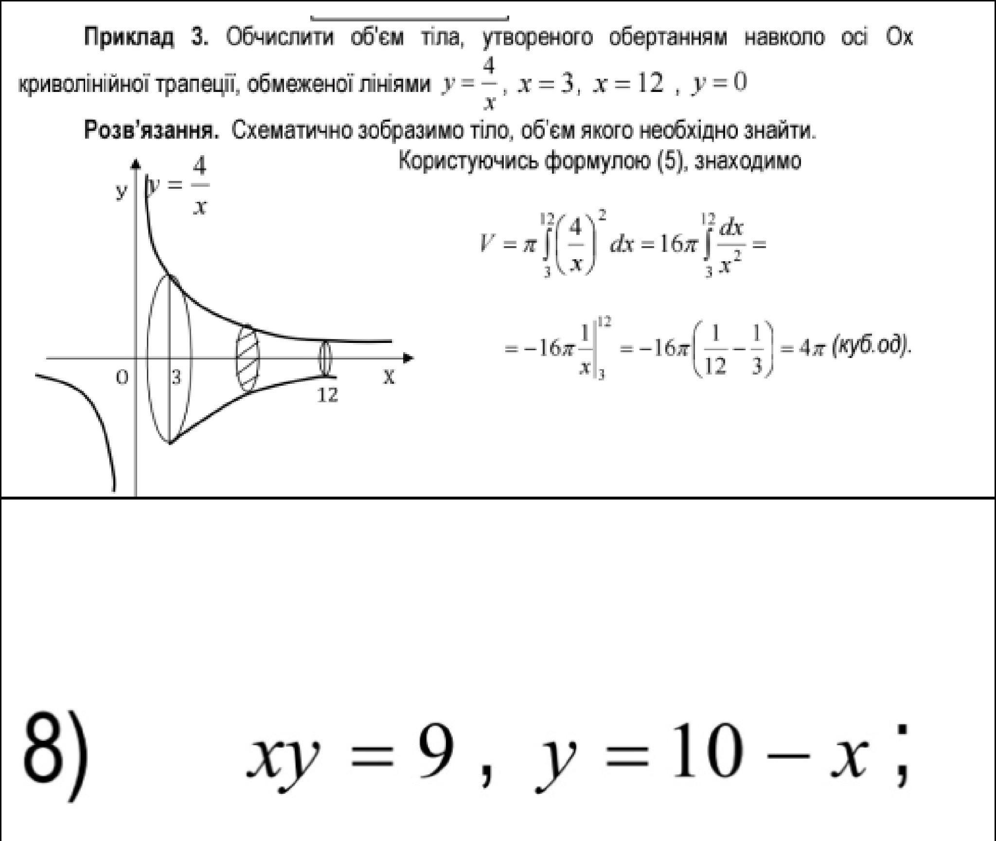 Обчислити об'єм тіла, утвореного обертанням навколо осі Ох, фігури обмеженої лініями.