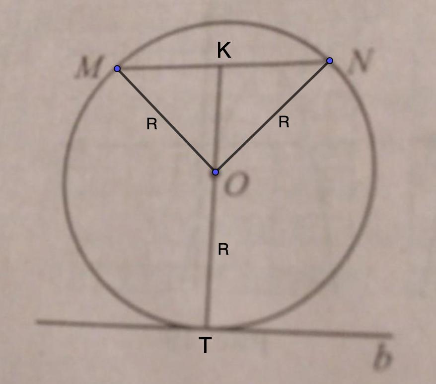 ПОЖАЛУЙСТА СРОЧНО НУЖНО НАДО.Радиус окружности с центром в точке О равени37 ,длина хорды MN равна 24.Найдите растояние от хорды MNдо параллелной её касательной b