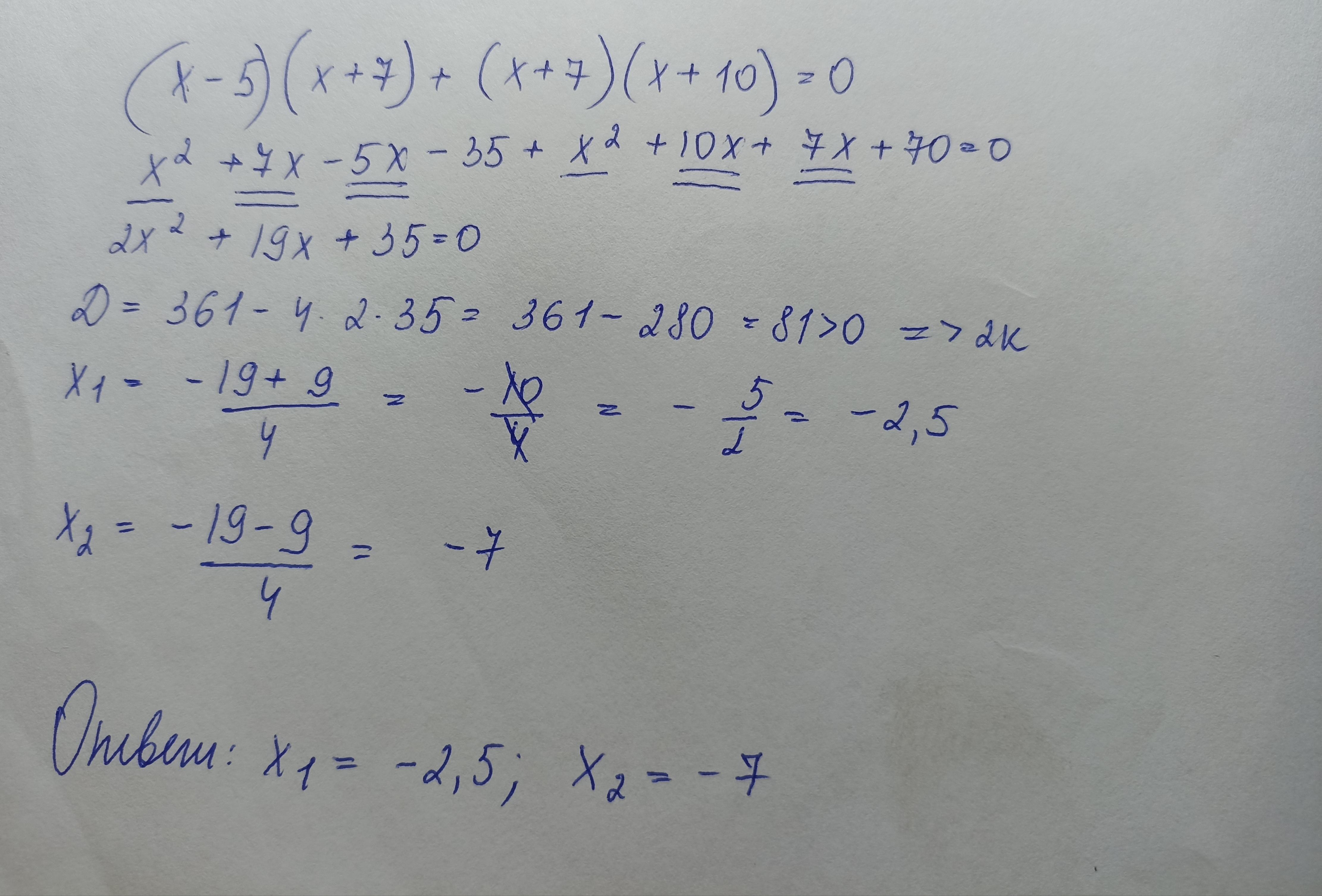 Ответ: х1 = -2,5