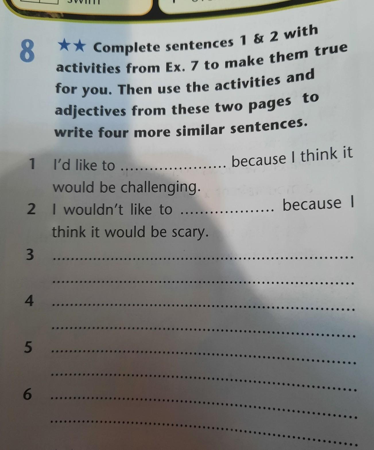 там в задании написано что нужно написать предложения используя слова из 7 задания , а ты его не сфоткала, как делать то?