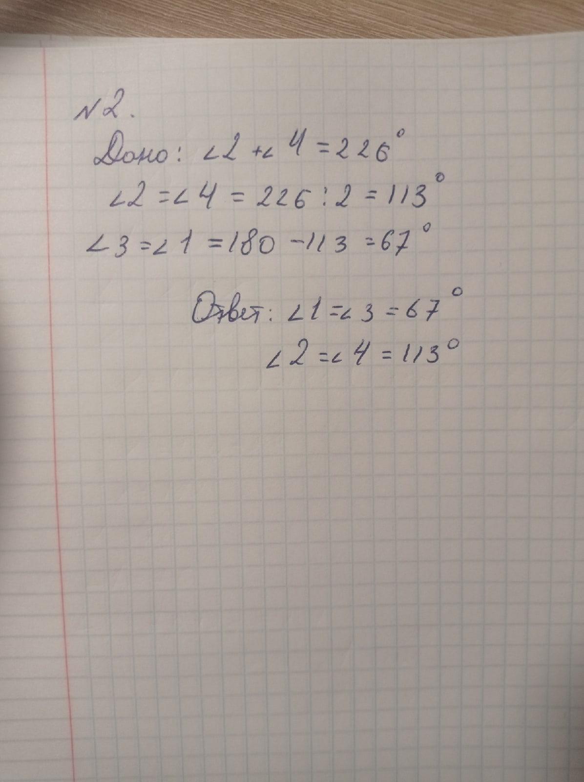 2) кут 2=4=113°