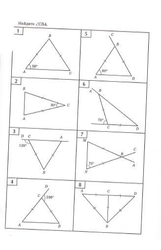 8. треугольник авд - равносторонний, так как известно, что ва = вд, медиана, проведенная с вершини угла = стороне ас и сд. Если большой треугольник равносторонний, то все углы равны 60 град. Угол сва = 30 градусов, так как это не только медиана, проведенная с вершини в, но и бесектриса, так как равенство первое треугольников за сторонами(вс - общая, в условии сказано, что ва = вд) и углом, угол в = 60 град. Бусектриса делит угол пополам, значит сва = 30 град.