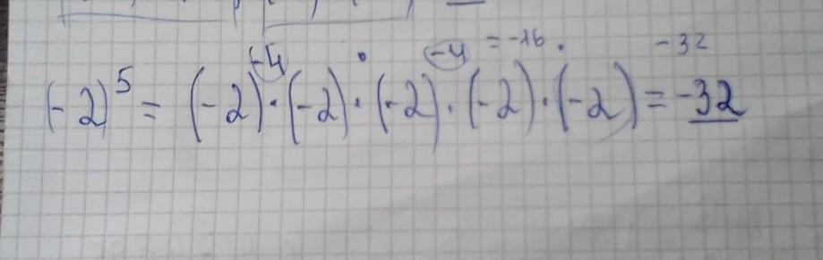 совершенно легко перемножить минус два само на себя пять раз, это будет -32
