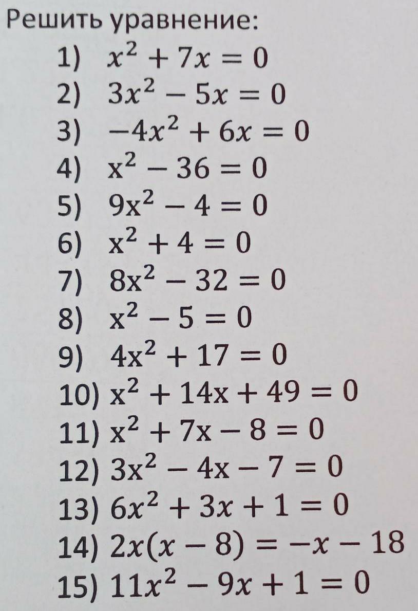 1) х²+7х=0