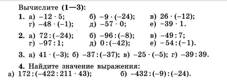 41×(-3)=-123 б)-37÷(-37)=1 в)-25×(-5)=125 г)-39÷39=-1