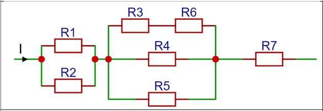 Ro = R12 + R3456 + R7 = R1*R2/(R1+R2) + 1/(1/(R3+R6)+1/R4+1/R5) + R7 =