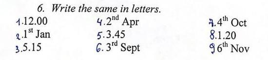 Відповідь:twelve o'clock, first of January, quarter past five, second of April, quarter to four, third of September, fourth of October, twenty past one, sixth of November