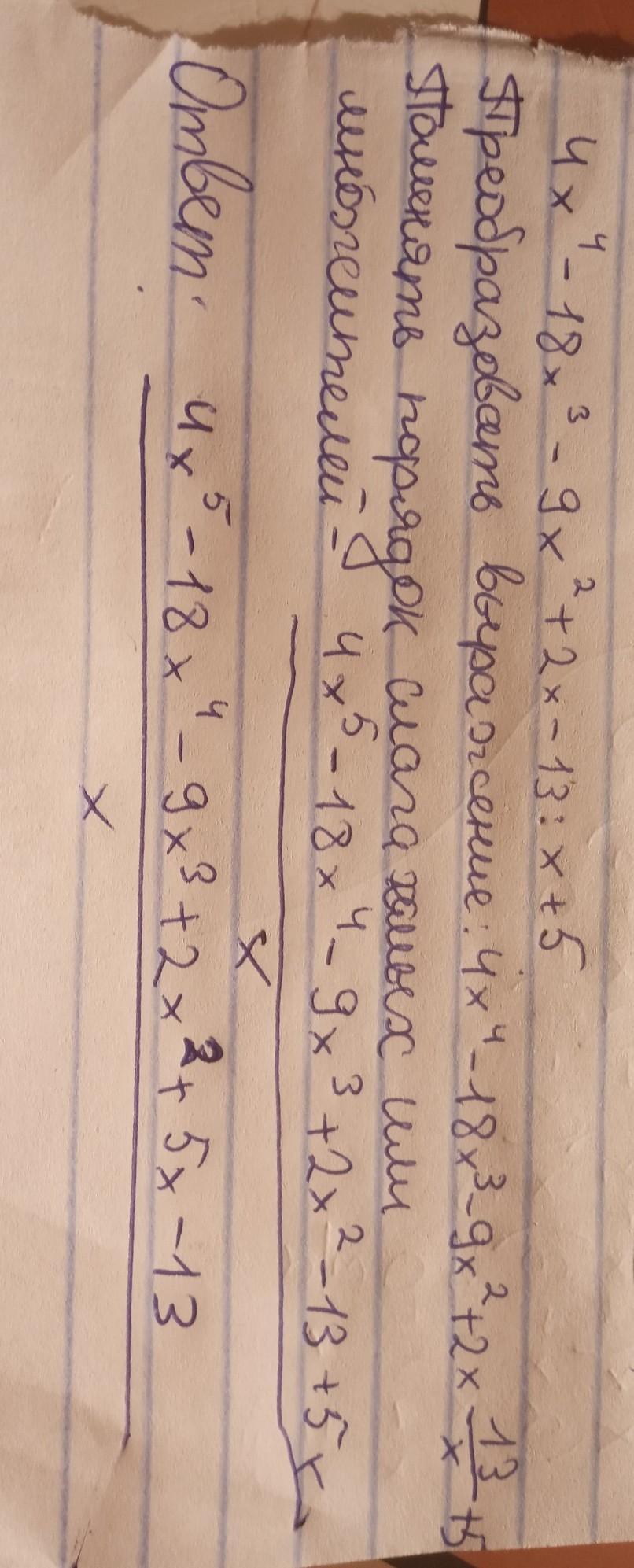 ответ: 4x⁵-18x⁴-9x³+2x²+5x-13/x