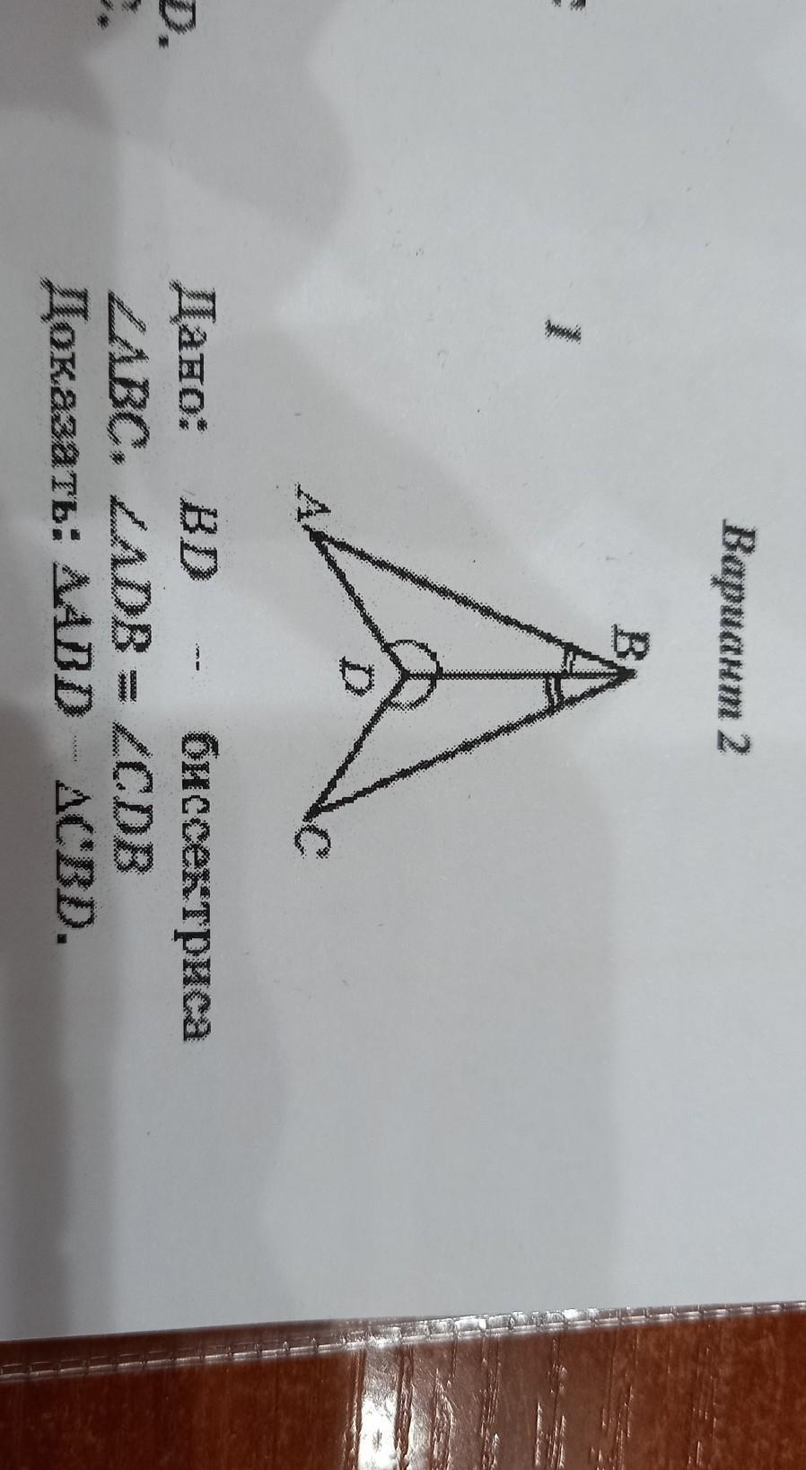 Ответ: треугольники равны до двум углам и стороне между ними ( угол ABD равен углу CBD, угол ADB равен углу CDB, BD - общая сторона)