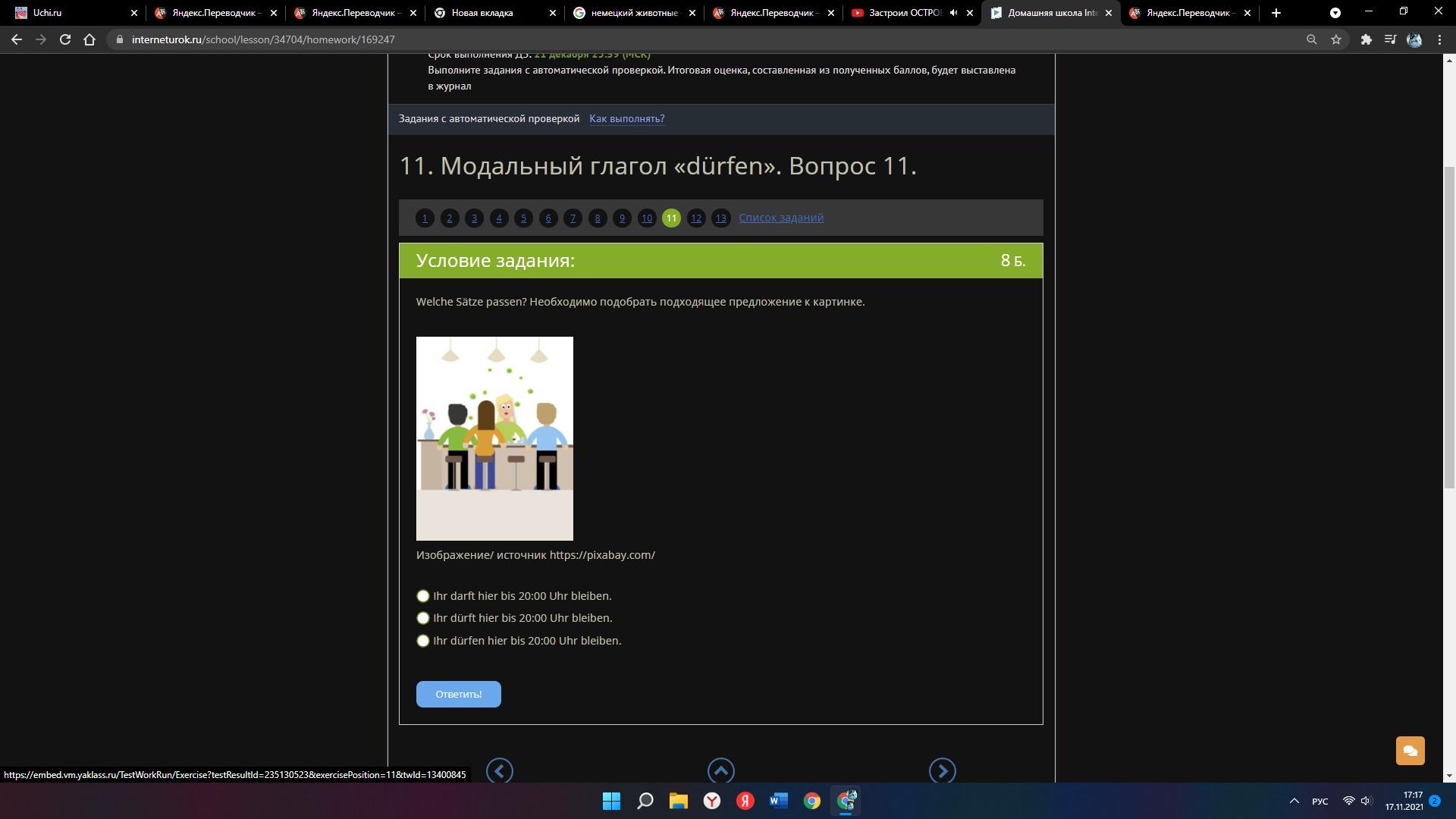 1. Ihr dürft hier bis 20:00 Uhr bleiben.