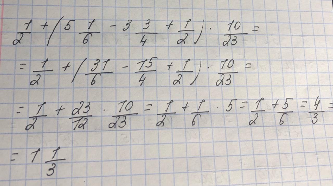 1/2+(5 1/6-3 3/4+1/2)*10/23= решите пожалуйста и если можно объяснение!!!​